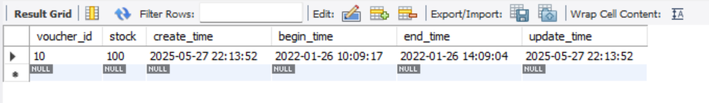 (这里其实要改一下,把 endTime 改成在你当前时间之后。这样才能在前端看到优惠券)