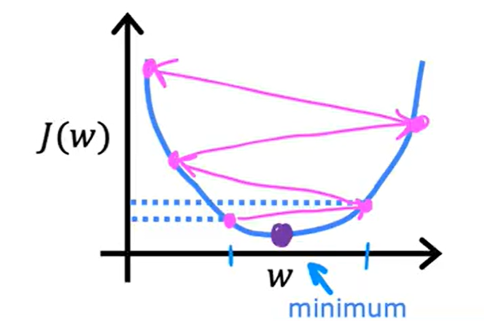 α 太大有可能总是“迈步迈过头”到达不了极小值点。