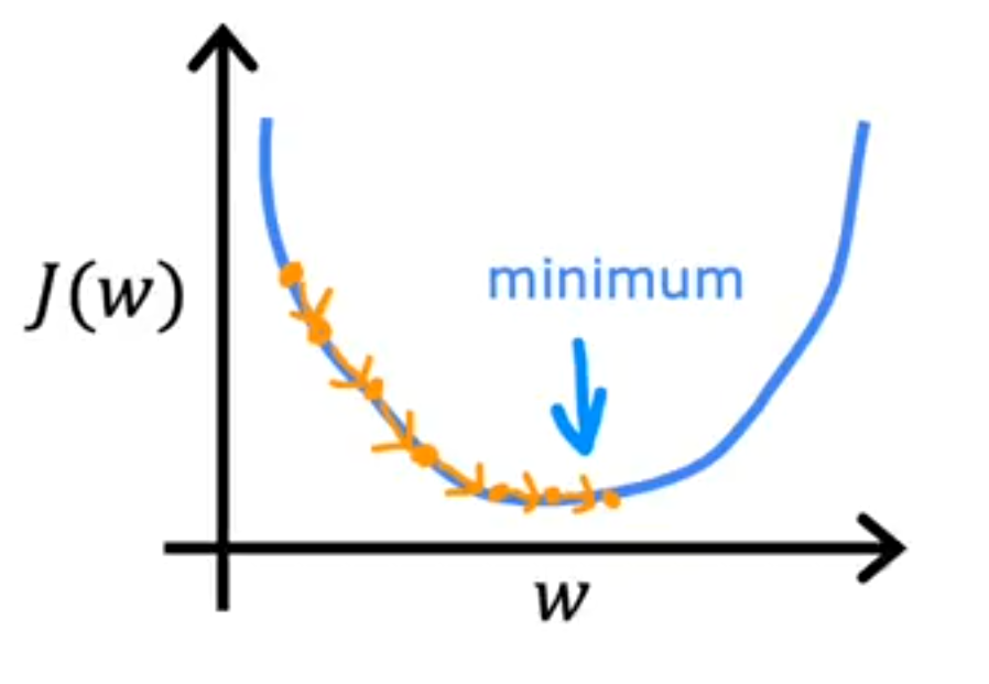 根据当前训练数据,通过求偏导更新 w,b 让代价函数下降最快(Gradient Descent)。