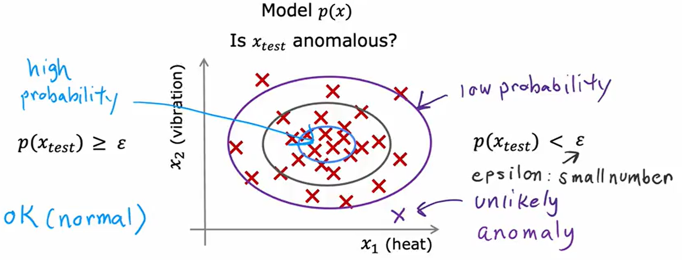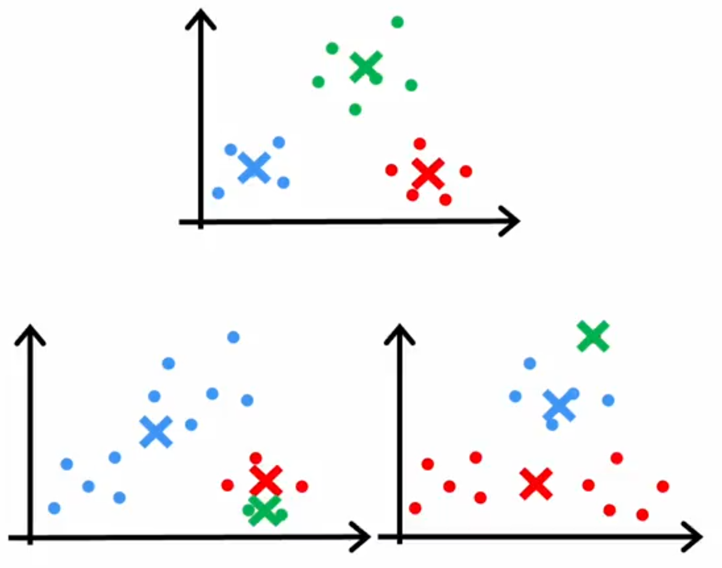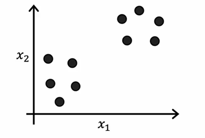 没有对应的有标注的输出 y。比如找到一些潜在的分类(把现有用户分为几种,分类之前我们并不知道有哪些最终的用户类,是计算机帮我们划分的)。这叫做聚类(Clustering)。除此之外的应用还有异常情况检测,新闻关键词组合提取等。
